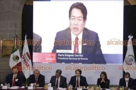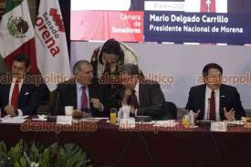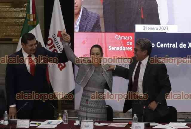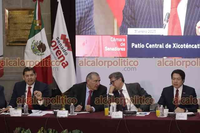 Ciudad de México, 31 de enero de 2023.- Sonrisas y abrazos en la Antigua Casona de Xicoténcatl, donde senadores de MORENA celebran su X Reunión Plenaria, con la presencia de las “corcholatas”: Adán Augusto López, Claudia Sheinbaum, Marcelo Ebrard y Ricardo Monreal.