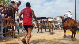 Tlacotalpan Ver., 1° de febrero de 2023.- “Casi me agarra el toro, sientes la adrenalina y puedes divertirte", dijo uno de los participantes en la suelta de toros en honor a la Virgen de la Candelaria.
