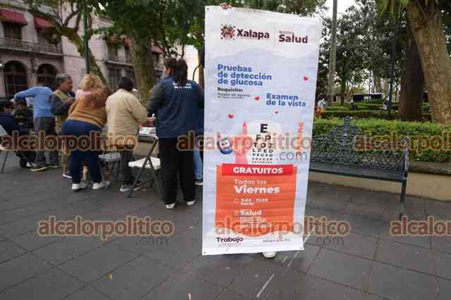 Xalapa, Ver., 3 de febrero de 2023.- En el Parque Juárez, la Dirección de Salud municipal instaló módulo de pruebas gratuitas de detección de glucosa y de exámenes de la vista.