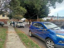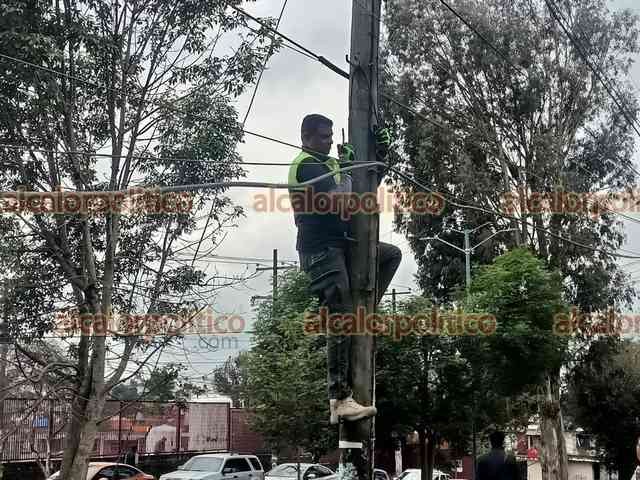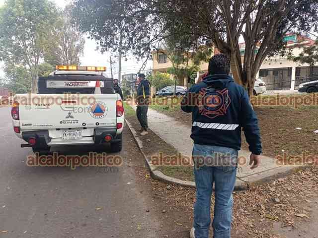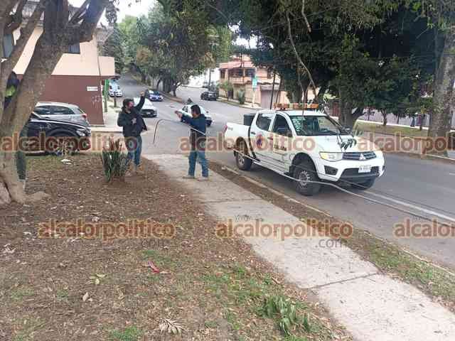 Xalapa, Ver., 3 de febrero de 2023.- Elementos de Protección Civil Municipal retiraron cables, al parecer de telefonía, que se encontraban casi a ras del suelo y que obstruían el paso, en la avenida 1° de Mayo, a un costado de la clínica del ISSSTE.