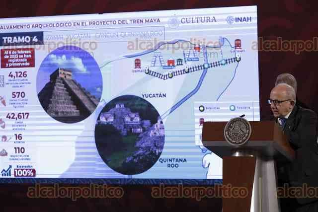 Ciudad de México, 6 de febrero de 2023.- Titulares de varias secretarías informaron de los programas sociales y gubernamentales que se han aplicado durante la construcción del Tramo 4 del Tren Maya, en Yucatán.