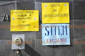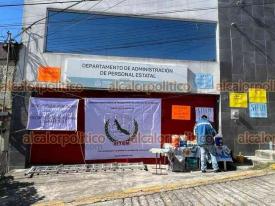 Xalapa, Ver., 7 de febrero de 2023.- Agremiados al SITEM “tomaron” el Departamento de Administración de Personal Estatal de la SEV. Exigen la renuncia de la Directora.