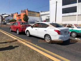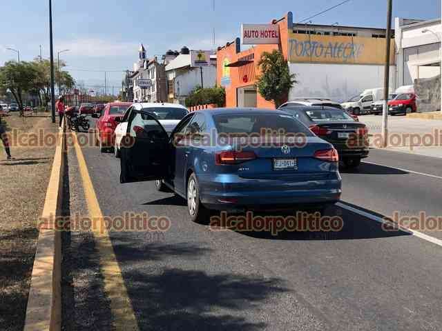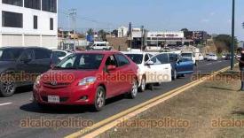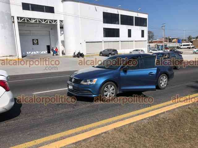 Xalapa, Ver., 7 de febrero de 2023.- Tres vehículos colisionaron por alcance en la carretera Xalapa-Veracruz, a la altura de Las Trancas. Un Jetta color azul chocó a vehículo color blanco y lo proyectó contra el coche rojo. No hubo lesionados.