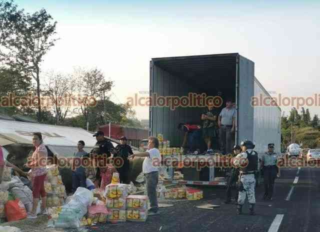 Rapiña tras volcadura de tráiler en Emiliano Zapata