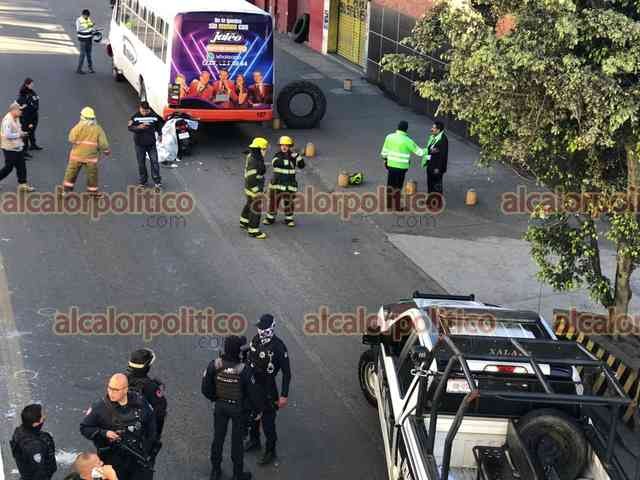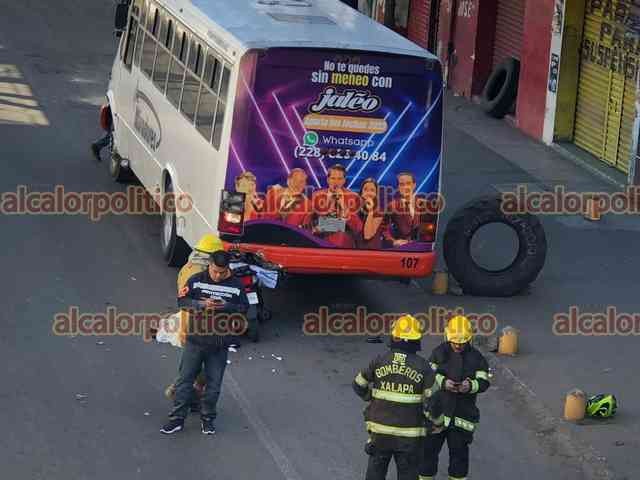 Xalapa, Ver., 8 de febrero de 2023.- Motociclista falleció tras chocar contra la parte trasera de un autobús de la línea Miradores en la lateral del puente Macuiltépetl. Un joven que viajaba como acompañante resultó gravemente lesionado y fue trasladado a un hospital.