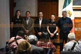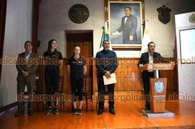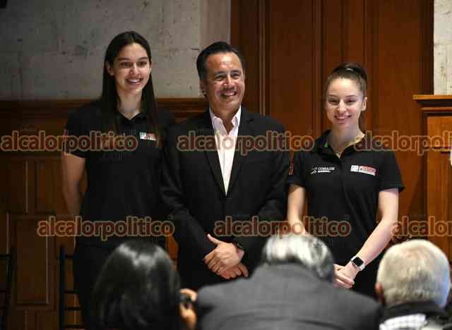 Xalapa, Ver., 8 de febrero de 2023.- Junto al presidente de la Federación Mexicana de Taekwondo, Raymundo González, y las campeonas mundiales Daniela Souza y Leslie Soltero, el gobernador Cuitláhuac García anunció que de este jueves a domingo el Velódromo será sede del Campeonato Nacional de Taekwondo Veracruz 2023.
