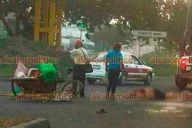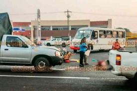 Veracruz, Ver., 17 de marzo del 2023.- Una pareja de adultos que viajaban en su triciclo, fueron embestidos por una camioneta cuando intentaban atravesar la carretera federal Veracruz-Xalapa, a la altura del IMSS de Tejería; por el fuerte golpe, fueron trasladados a un hospital.