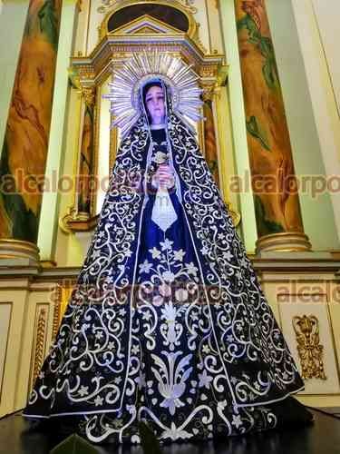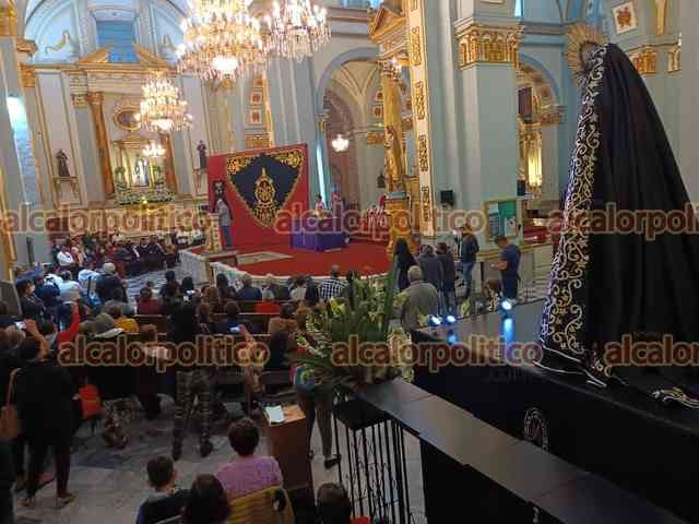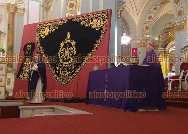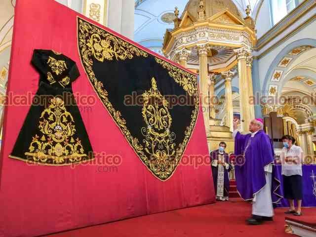 Córdoba, Ver., 19 de marzo de 2023.- En misa especial oficiada la noche del sábado, el obispo Eduardo Cirilo Carmona Ortega presentó y bendijo la vestimenta de la Virgen de la Soledad.