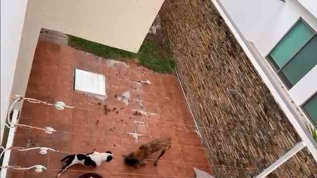 Veracruz, Ver., 19 de Marzo 2023.- Dos perros en fraccionamiento Lomas Residencial en la Riviera Veracruzana asesinaron a un tercero presuntamente por hambre; vecinos aseguran que dueños los dejan olvidados por días. Piden intervención de autoridades ante crueldad animal.