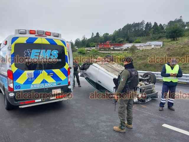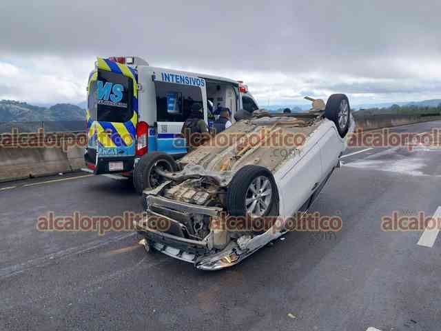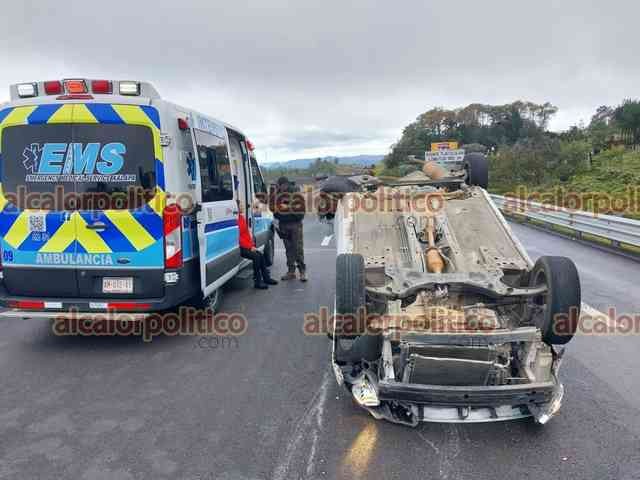 Tlacolulan, Ver., 20 de marzo de 2023.- Torton y auto chocaron y terminaron volcados en la carretera Xalapa-Perote. Paramédicos del grupo EMS atendieron a los conductores de ambas unidades. El percance afectó varios minutos la circulación hacia la Capital.