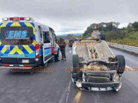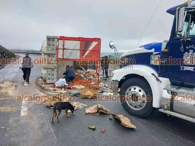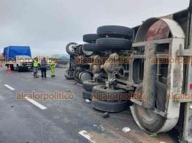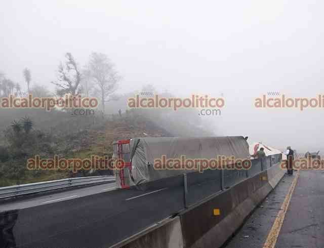 Vuelcan tráiler y auto, en la Xalapa-Perote