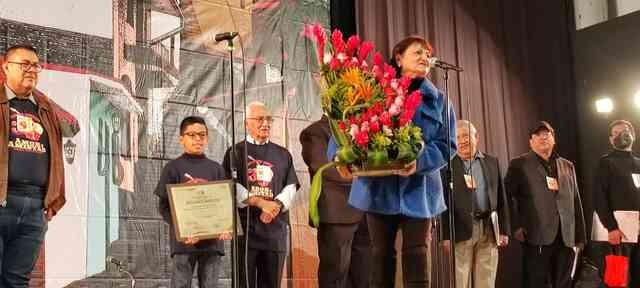 Xalapa, Ver., 20 de marzo de 2023.- El Ateneo de Puebla entregó a Bertha Elda Peralta Mon-taño un reconocimiento por su trayectoria profesional hecha a lo largo de 30 años desde que fundó el Concurso Nacional de Rondallas Amor y Amistad.