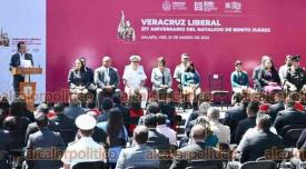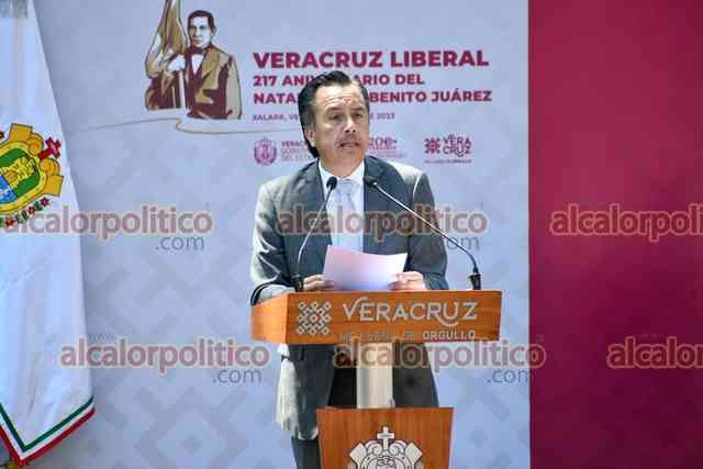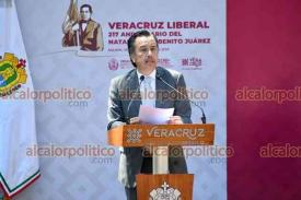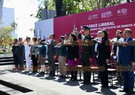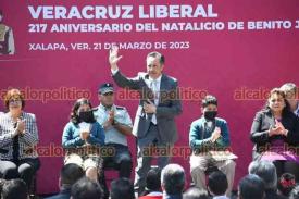 Xalapa, Ver., 21 de marzo de 2023.- El gobernador Cuitláhuac García Jiménez encabezó la ceremonia del 217 aniversario del natalicio de Benito Juárez García. Asistieron las titulares de los Poderes Legislativo y Judicial, miembros de su gabinete, mandos militares y la Fiscal General.