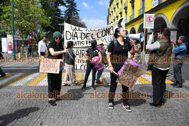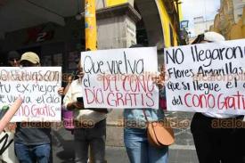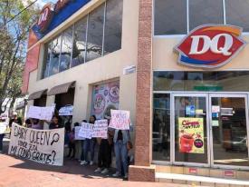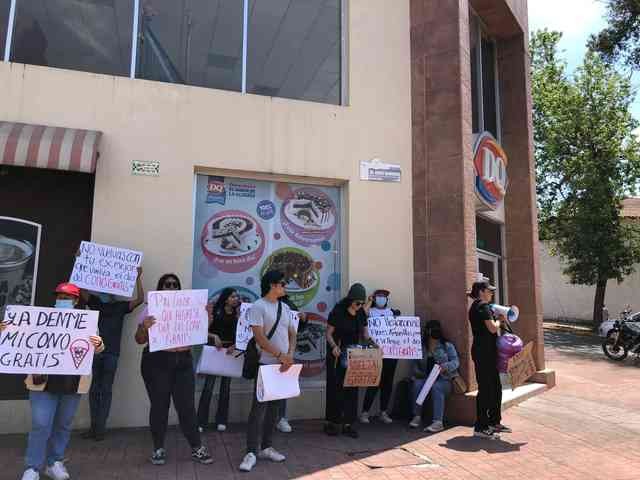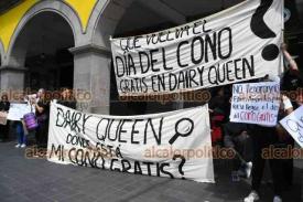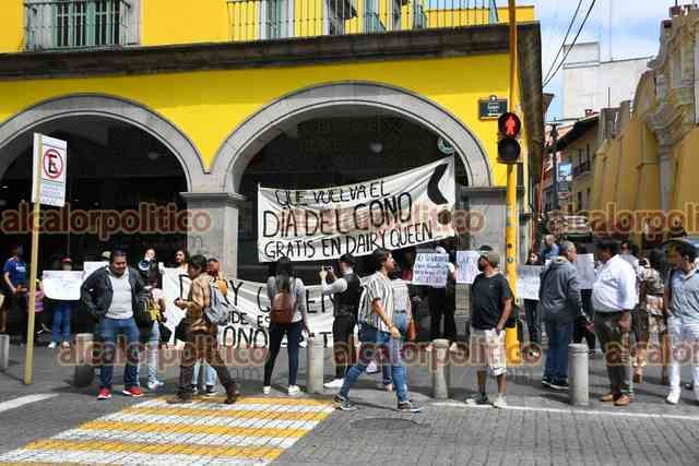 Xalapa, Ver., 22 de marzo de 2023.- Este miércoles jóvenes se manifestaron en el Centro de la Capital para solicitar a la cadena de helados DQ que regresen el día de conos gratis.