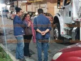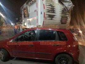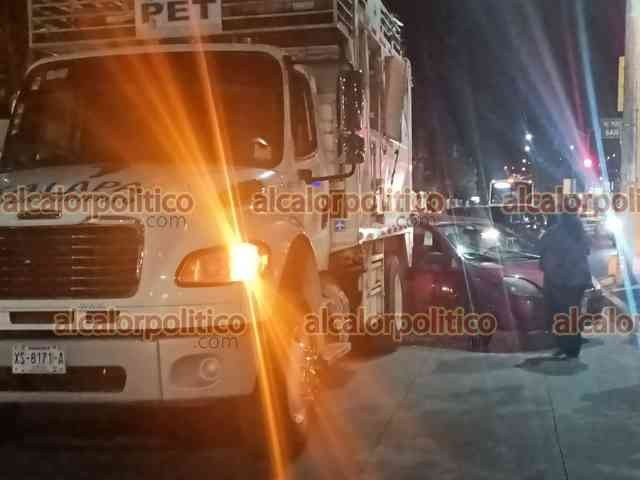 Xalapa, Ver., 23 de marzo de 2023.- Camión de Limpia Publica chocó contra un vehículo particular en la esquina de las avenidas Lucio Blanco y Primero de Mayo, el camión recolector maniobraba en reversa cuando impactó al vehículo compacto, no hubo lesionados.