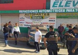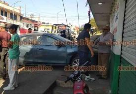 Xalapa, Ver., 24 de marzo de 2023.- Auto que circulaba en la calle Paseo de Xalapa, colonia Sostenes M. Blanco, se subió a la acera luego que su conductor perdió el control y atropelló a un menor de edad. Paramédicos del grupo Panteras atendieron al lesionado y lo trasladó a un hospital.
