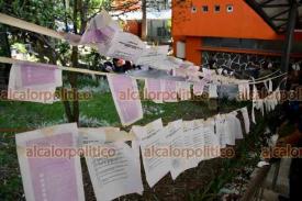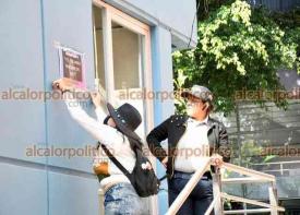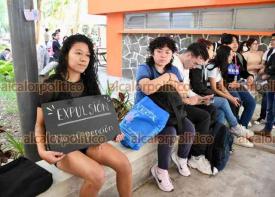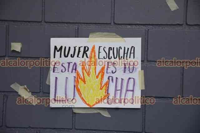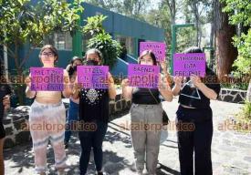Xalapa, Ver., 24 de marzo de 2023.- Estudiantes de Arquitectura de la UV protestan afuera del Aula Magna de dicha facultad para exigir alto al acoso y la expulsión de un profesor que presuntamente las acosa desde tiempo atrás.