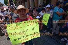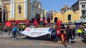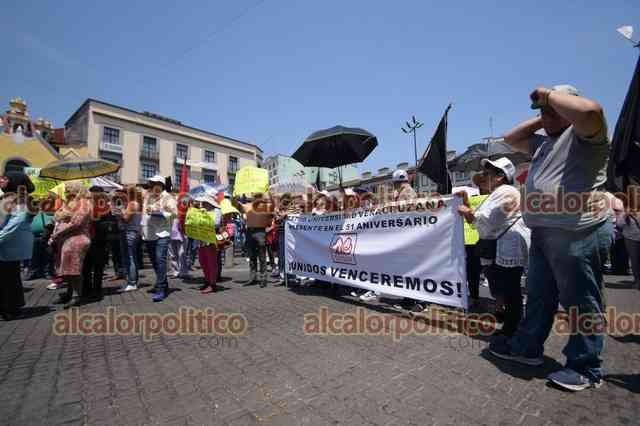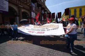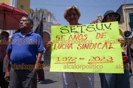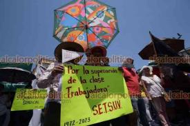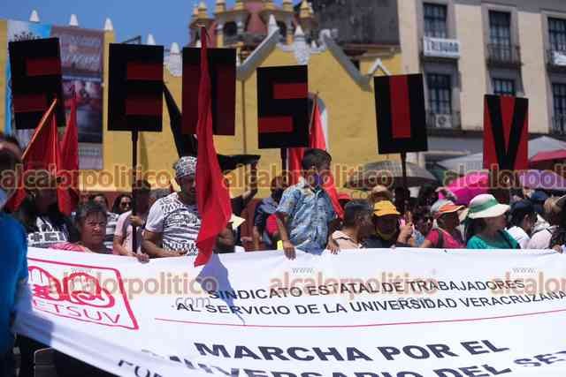 Xalapa, Ver., 24 de marzo de 2023.- Como en otras regiones de la UV, afiliados al SETSUV marcharon y llegaron al centro de la Capital donde bloquearon la calle Enríquez varios minutos. “Estamos de celebración” por el 51 aniversario de la organización, dijo el secretario general Juan Mendoza Gutiérrez.