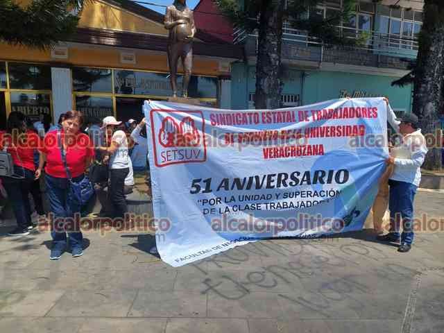 Orizaba, Ver., 24 de marzo de 2023.- Trabajadores del SETSUV salieron esta tarde en una marcha pacífica, para celebrar el 51 aniversario de su sindicato. Algunos de ellos denunciaron que aún quedan pendientes de la UV con ellos y por lo cual podría estallar la huelga en mayo.