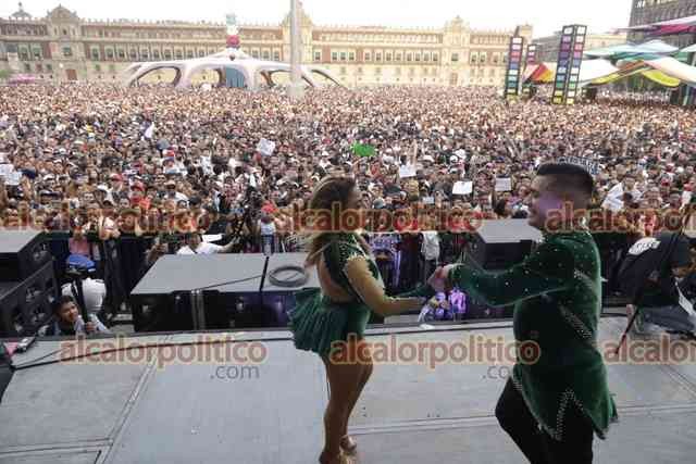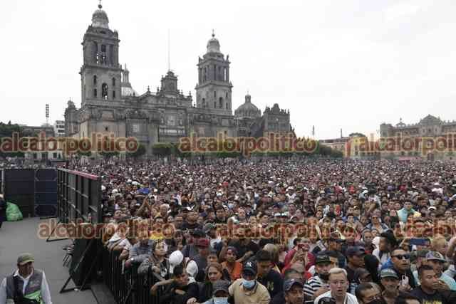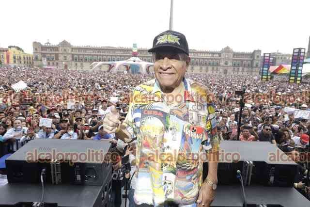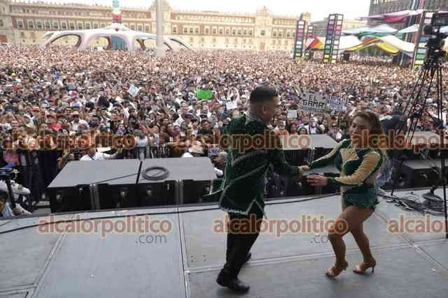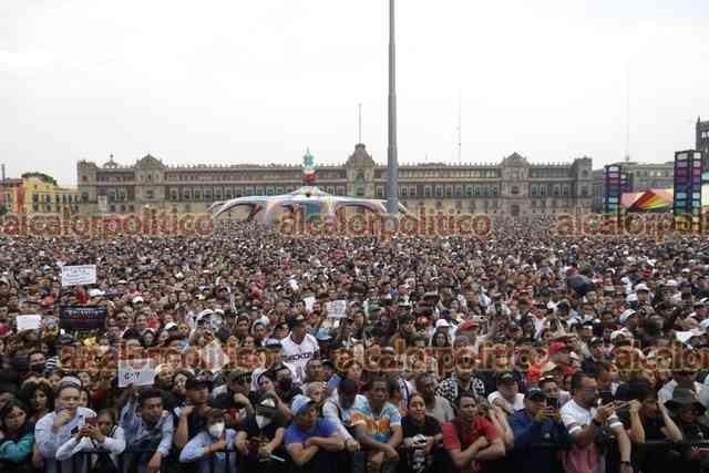 Ciudad de México., 25 de marzo de 2023.- Miles de personas asisten al Zócalo para disfrutar de la fiesta de los sonideros liderados por Ramón Rojo y su sonido La Changa, en el festival Noche de Primavera.