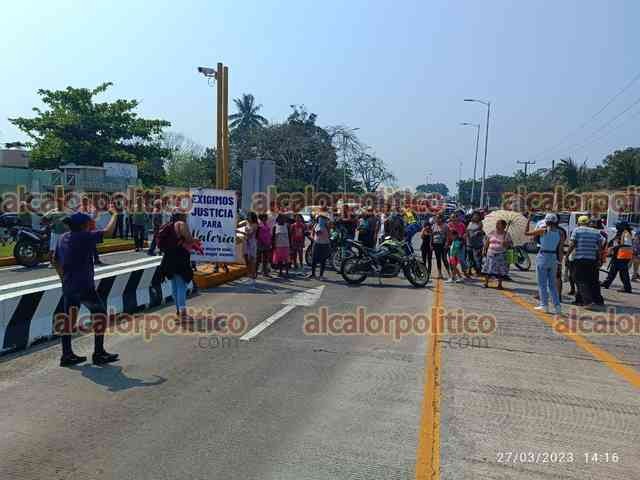 Nautla, Ver., 27 de marzo de 2023.- Cerca de las 17:20 horas de este lunes, habitantes que exigen justicia para Valeria mantenían cerrada la circulación a la altura de la caseta de cobro en el puente. Exigen la presencia del Gobernador.