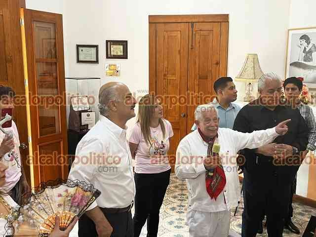 Xalapa, Ver., 24 de mayo de 2023.- El alcalde Ricardo Ahued Bardahuil develó una placa en honor al arpista Alberto de la Rosa, reconociéndolo como ícono internacional de la música tradicional veracruzana. Posteriormente, recorrieron la exposición en el Museo de la Música Veracruzana.
