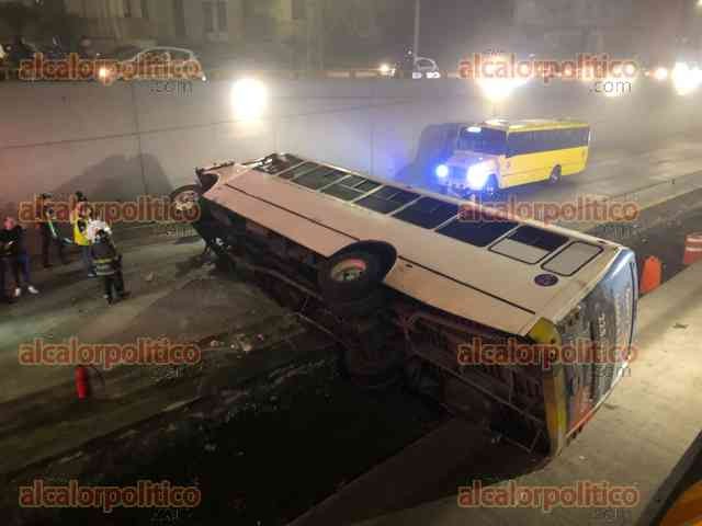 Volcó autobús de pasajeros en Xalapa, sólo lesionados leves