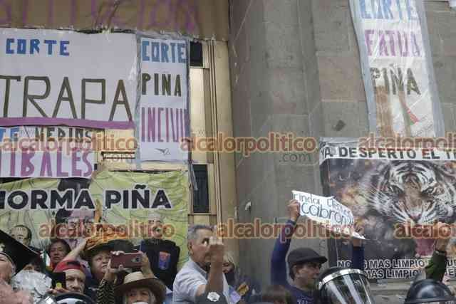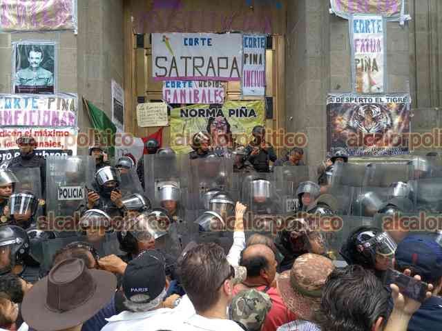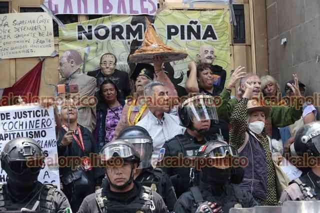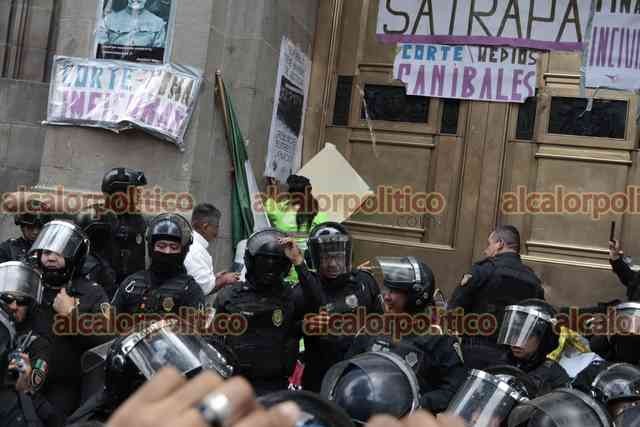 Ciudad de México, 28 de mayo de 2023.- Integrantes de Chalecos México y grupos anti 4T llegaron a la Suprema Corte a desalojar el campamento contra la ministra presidenta Norma Piña; policías aseguraron el sitio para resguardar la sede.