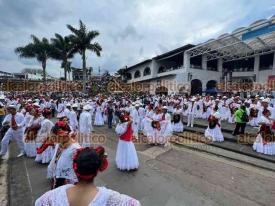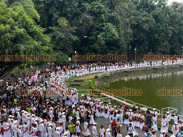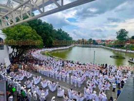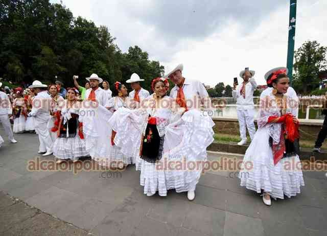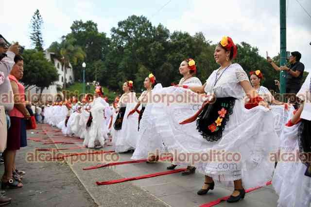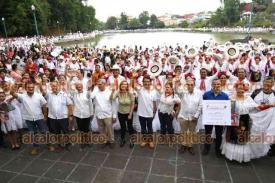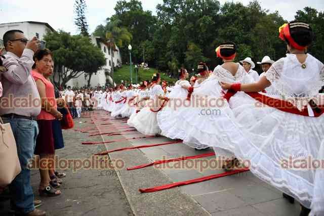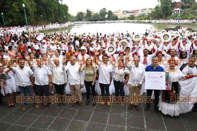 Xalapa, Ver., 28 de mayo de 2023.- ¡Ay, arriba y arriba! 2 mil 41 bailarines, en sus trajes típicos de Veracruz, atiborraron el Paseo de Los Lagos para bailar, llenos de alegría jarocha, "La Bamba".