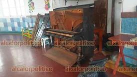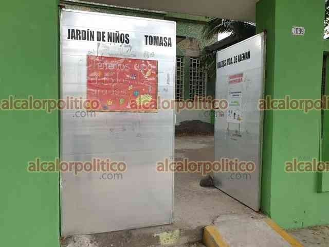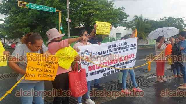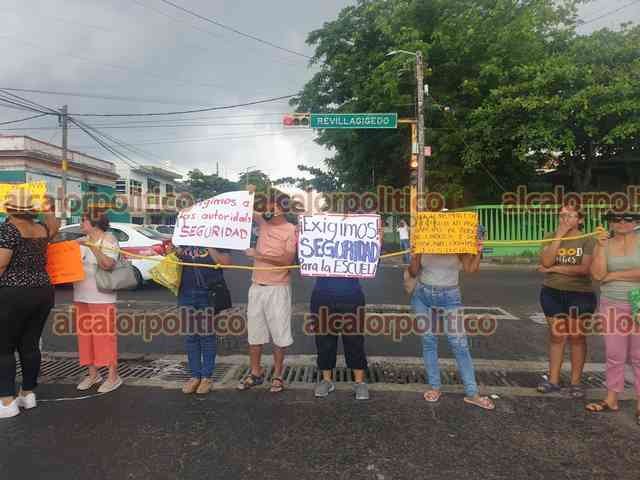 Veracruz, Ver., 29 de mayo de 2023.- Padres de familia del Jardín de Niños “Tomasa Valdés de Alemán” bloquearon calles Cortés y Victoria para exigir seguridad ante constantes robos, que los ha dejado sin luz, agua, puertas y equipo didáctico.