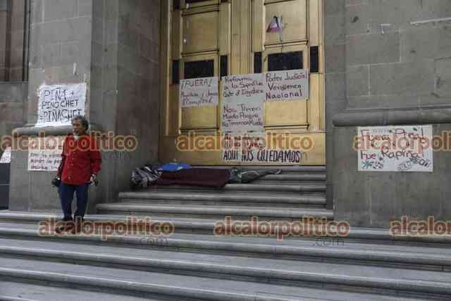Ciudad de México, 29 de mayo de 2023.- La Suprema Corte de Justicia de la Nación amaneció con nuevas pancartas contra los ministros y sin resguardo policial, tras el desalojo de ayer del plantón de simpatizantes de la 4T.