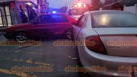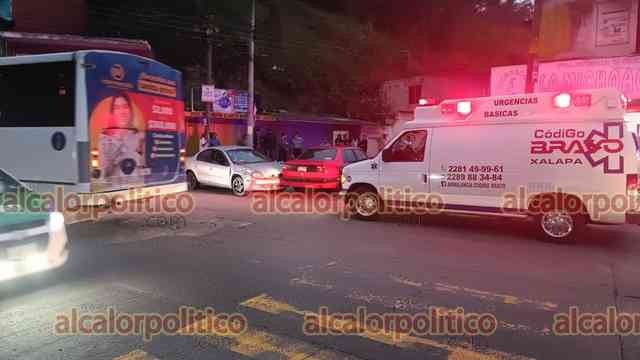 Xalapa, Ver., 31 de mayo de 2023.- Dos vehículos participaron en un accidente sobre la avenida Mártires 28 de Agosto, esquina El Porvenir, dos personas resultaron lesionadas y fueron atendidas por paramédicos de Código Bravo.
