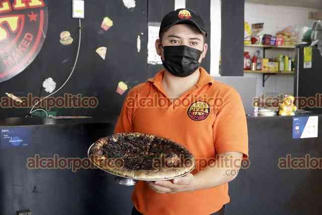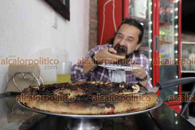 Atlixco, Pue., 1° de junio de 2023.- Alejandro Pérez, propietario del restaurante Pizza Home Maked, creó la “pizza volcanic”, inspirada en las erupciones del Popocatépetl.