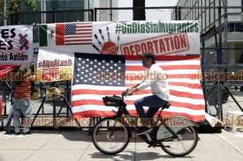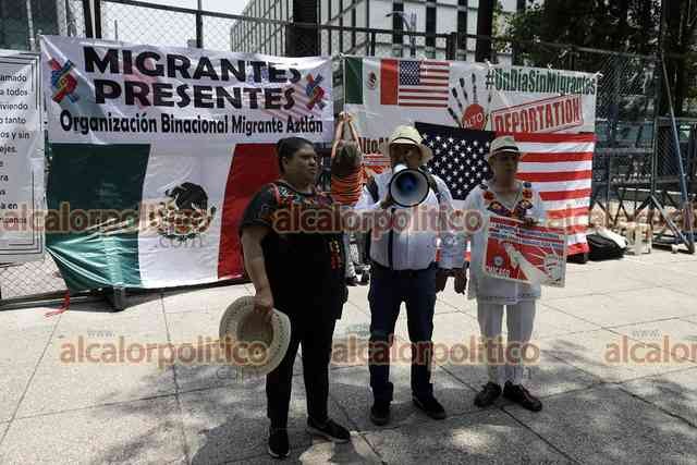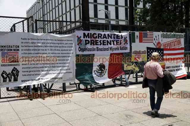 Ciudad de México, 1° de junio de 2023.- En la embajada de EU, colectivos de migrantes exhortan a un boicot económico contra el estado de Florida por sus políticas antimigratorias.