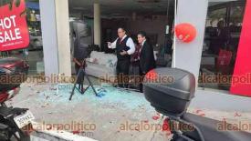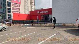 Xalapa, Ver., 1° de junio de 2023. La SSP activó Código Rojo por intento de asalto a cuentahabiente en sucursal bancaria de la avenida Lázaro Cárdenas, cerca de Plaza Crystal. Los delincuentes habrían disparado contra el cliente y dañaron fachada de mueblería aledaña. No se habla de lesionados ni detenidos.