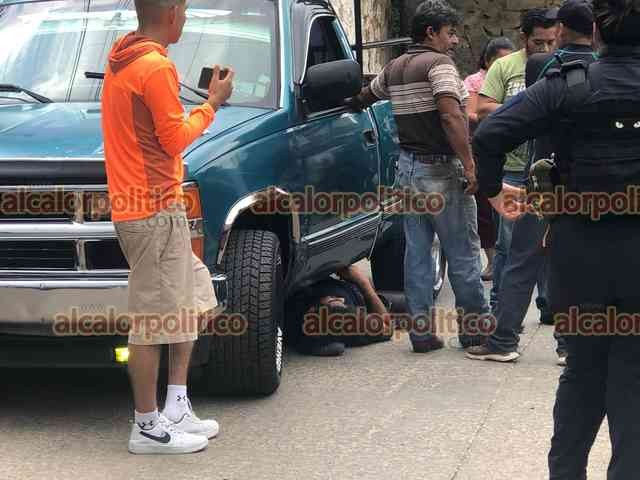 Xalapa, Ver., 2 de junio de 2023.- Caos en la calle Independencia de la colonia Dolores Hidalgo, donde vecinos confrontaron a policías estatales que intentaron sin éxito detener a un hombre que supuestamente los agredió y se escondió bajo una camioneta. Mientras esto ocurría, una patrulla chocó con vehículo de CMAS, bloqueando la circulación.