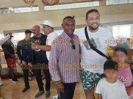 Boca del Río, Ver., 2 de junio de 2023.- Oscar D’León y José Alberto “El Canario” coincidieron en un hotel de Boca del Río y sus fans aprovecharon para pedirles fotografías.