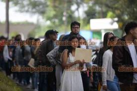 Xalapa, Ver., 3 de junio de 2023.- Cientos de jóvenes aspirantes a ingresar a la Universidad Veracruzana arribaron desde temprano a las sedes ubicadas en la Zona Universitaria para presentar el examen de admisión.