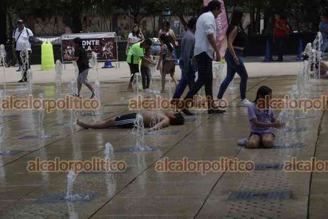 Se refrescan en las fuentes bailarinas, en la CDMX