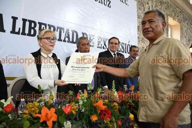 Xalapa, Ver., 7 de junio de 2023.- En el marco del Día de la Libertad de Expresión, el Club de Periodistas de México A.C. Delegación Veracruz, entregó preseas a comunicadores por su ardua labor; el reportero de alcalorpolitico.com, Hugo Cruz Ojeda, entre los reconocidos.