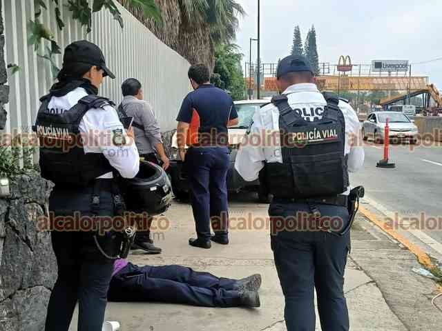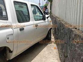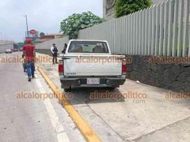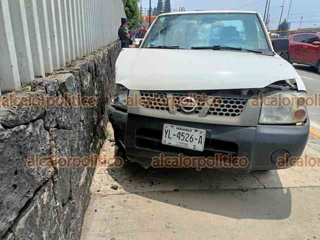 Xalapa, Ver., 10 de junio de 2023.- Conductor de una camioneta Nissan perdió el control, se subió a la banqueta de la avenida Lázaro Cárdenas frente al Poder Judicial y chocó contra la barda. Policía Vial acudió a tomar conocimiento del percance. El chofer resultó con algunos golpes.