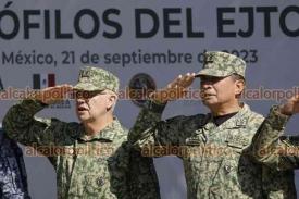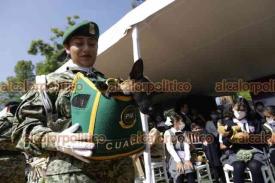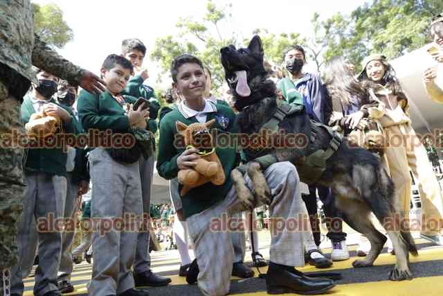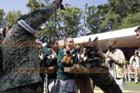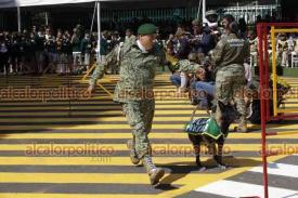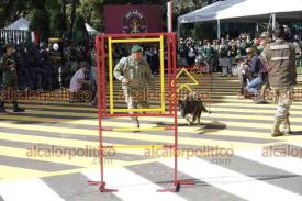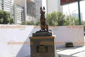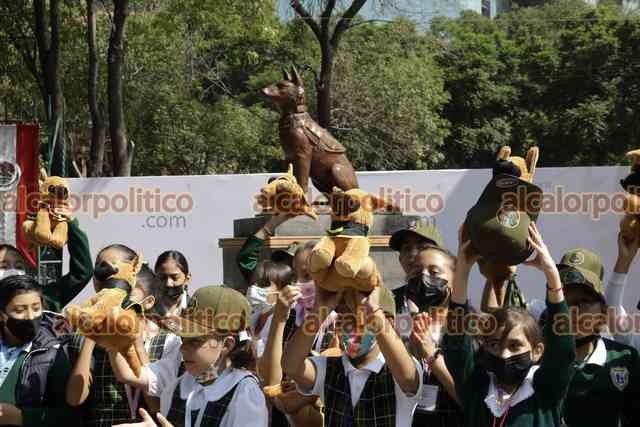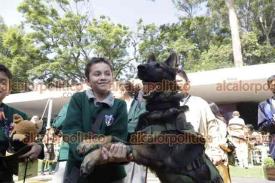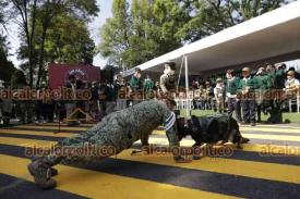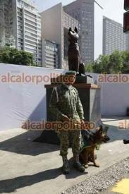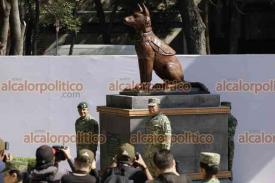 Ciudad de México, 21 de septiembre de 2023.- El secretario de la Defensa Nacional, Luis Crescencio Sandoval, entregó reconocimientos en el Día Nacional de los Binomios Caninos y develó un monumento a "Proteo", perro rescatista fallecido en Turquía en cumplimiento del deber.