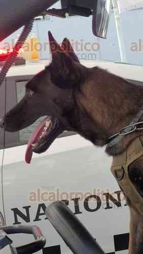 Veracruz, Ver., 21 de septiembre de 2023.- En el Día del Binomio Canino, la Guardia Nacional presumió a "Anubis" y "Basili", cuya labor es detectar armamento y drogas en el Aeropuerto de Veracruz.