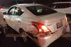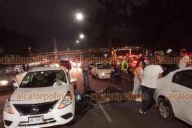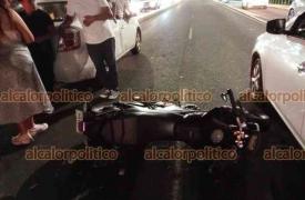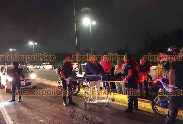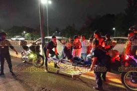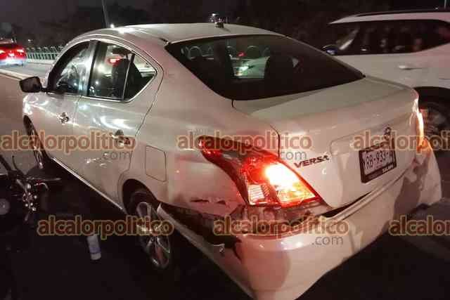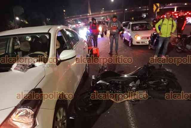Xalapa, Ver., 21 de septiembre de 2023.- Motociclista resultó lesionado al chocar contra auto en Circuito Presidentes a la altura de la USBI; tras el impacto salió proyectado contra otra vehículo sobre el carril con dirección a Maestros Veracruzanos. Paramédicos lo trasladaron a un hospital.
