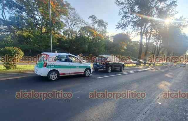 Xalapa, Ver., 22 de septiembre de 2023.- El taxi XL-2687 chocó por alcance contra auto particular en la avenida Lázaro Cárdenas a la altura de la Estancia Garnica. El accidente sólo dejó afectaciones a la circulación y daños materiales.