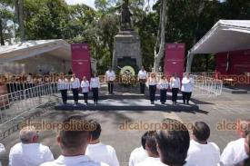Xalapa, Ver., 22 de septiembre de 2023.- Comité directivo del Sindicato de la Educación de Veracruz, encabezado por el secretario general Enrique Cruz Canseco, montó Guardia de honor al monumento de Miguel Hidalgo y Costilla.