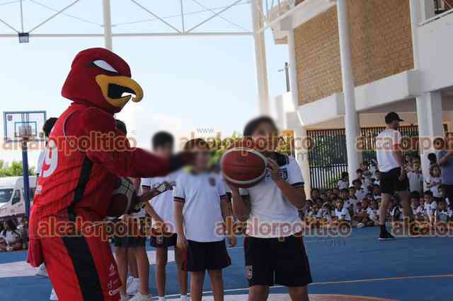 Veracruz, Ver., 22 de septiembre de 2023.- Jugadores de Halcones Rojos convivieron con alumnos de colegios de la zona conurbada como parte del programa “De la Duela a tu Escuela”, para fomentar el deporte y la importancia de la educación. Asistió también “Yeyo el Halcón”, la mascota del equipo.
