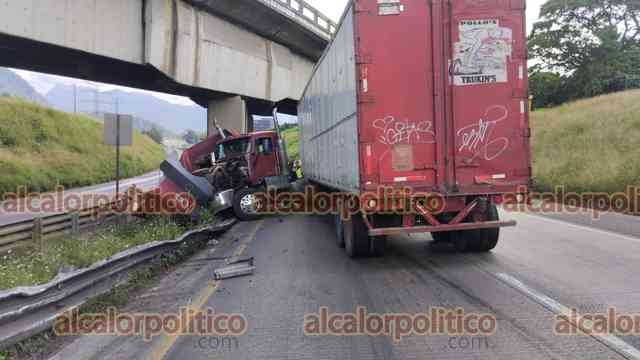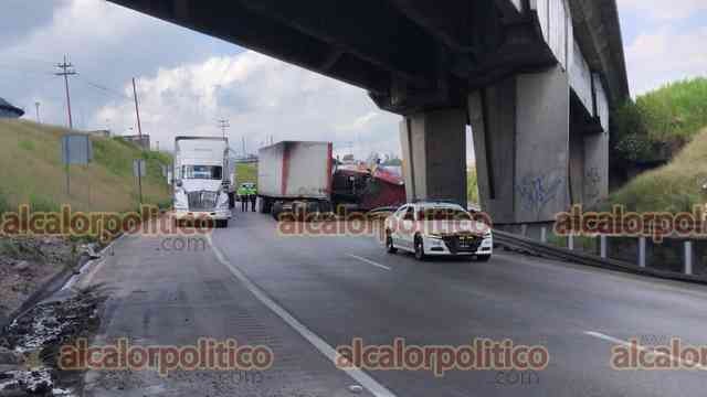 Ixtaczoquitlán, Ver., 23 de septiembre de 2023.- Este sábado, un tráiler se accidentó en la pista Orizaba-Córdoba, con dirección a Orizaba, a la altura del puente de Fermex.