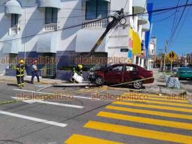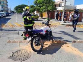 Veracruz, Ver., 24 de septiembre 2023.- Un motociclista tuvo que ser trasladado a un hospital tras impactarse contra con un automóvil que le hizo un corte de circulación sobre la calle Azueta, esquina avenida 16 de Septiembre de la colonia Flores Magón. Peritos realizaron las diligencias pues el auto terminó estrellándose contra un poste de luz.