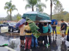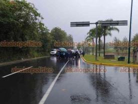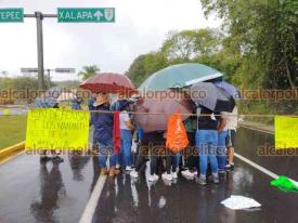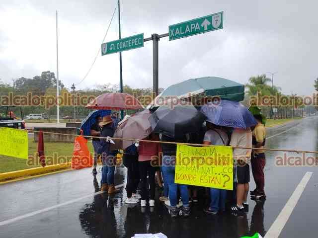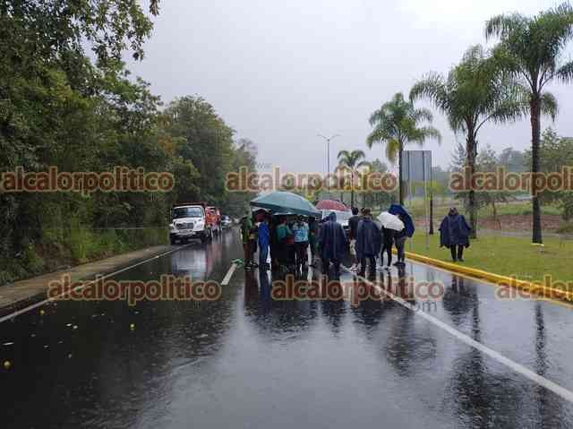 Coatepec, Ver., 25 de septiembre de 2023.- Cerca de las 15:30 horas y bajo la lluvia, la Síndica acudió a dialogar con quienes mantienen cerrada la carretera pero no logró destrabar el conflicto.